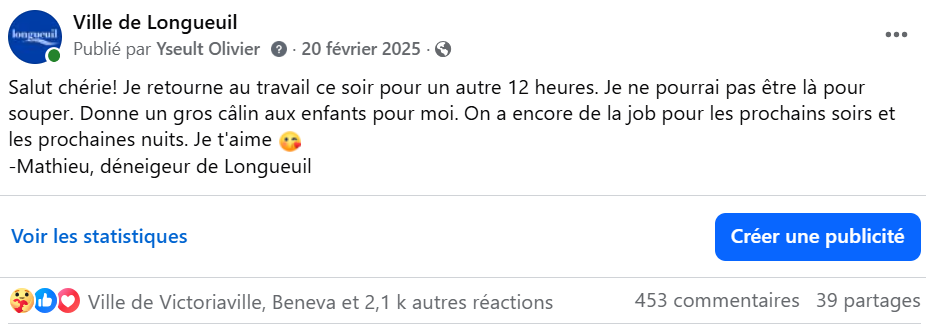 Un contexte météorologique exceptionnel, 170 employés, 150 machines, une stratégie numérique audacieusement humaine et un personnage : Mathieu le déneigeur. Un récit qui transforme la colère des citoyens en solidarité, compréhension et confiance envers les équipes terrain de la Ville de Longueuil.